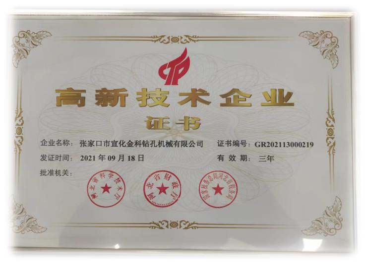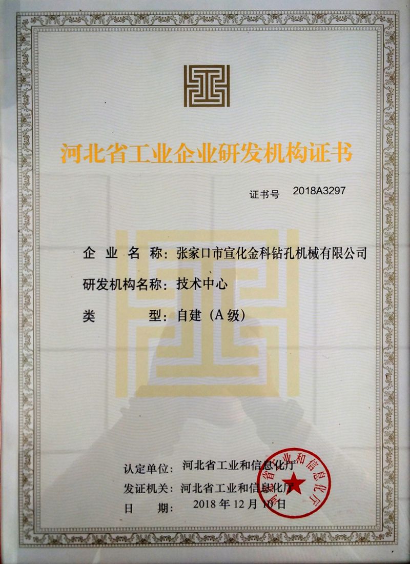 شهادة من مؤسسة البحث والتطوير التابعة للشركة الصناعية في مقاطعة Hebei