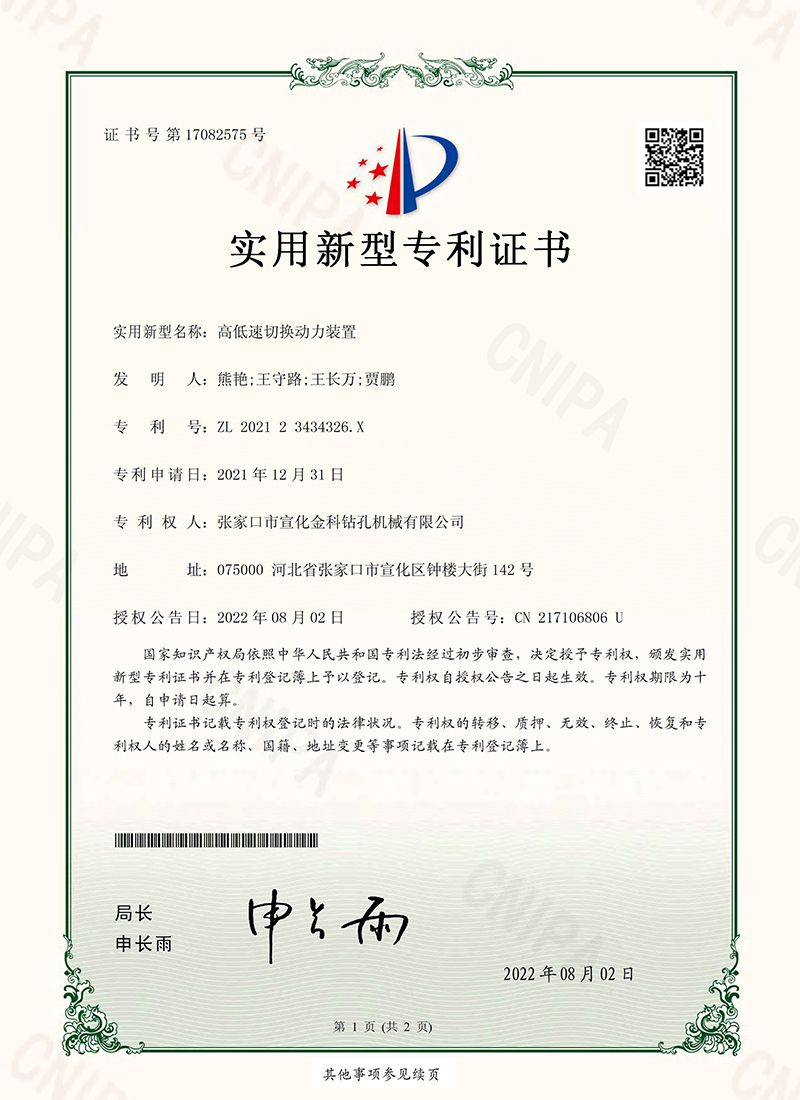 شهادة براءة اختراع - جهاز الحفر